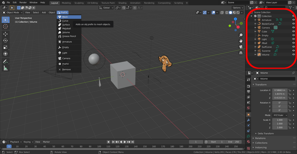 Well not anymore! With PreFIX, you can use the aptly named "PreFIX" menu and add a prefix to any object you want with one of the labeled buttons of your choice. You can also set all objects in the scene to have a prefix at once with the special PreFIX button. There is also a remove button that removes all the set prefixes that have been set with one of the buttons.