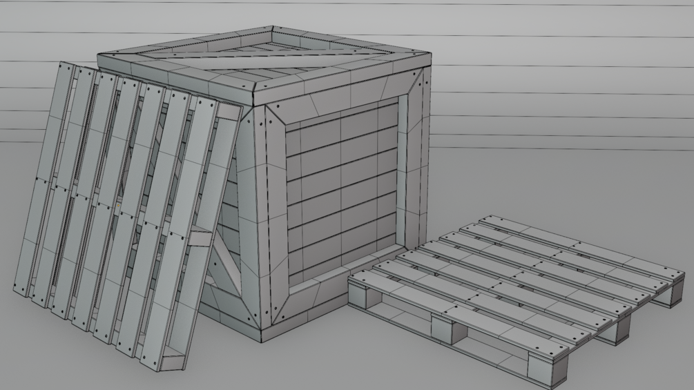 A pack that comes with a shipping crate and two different pallet designs with texures.